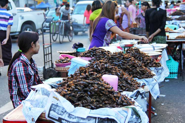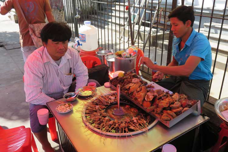 Stop for a drink at one of the local teashops, a great place to soak in the local cultural and lifestyle. As today comes to a close, take a walk around colorful Chinatown: pavement on both sides of the roads turns into night bazaar with all kinds of street shops – food, accessory, fruit & flower shops, etc. You may also visit the wet market on 38th Street. You can simply walk there (or) as a quick alternative, you can hop on a local bus; get off at the next stop and walk towards the market. These markets are part of Yangon’s life, offering nothing for the tourists, all for the locals.