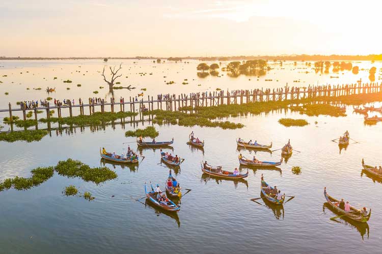 Finally, sunset photograph at an Iconic U Bein Bridge, the longest wooden bridge in the world and enjoy the panoramic view of Taungtaman Lake and surrounding. After full day photography session, return to Mandalay and overnight in Mandalay.