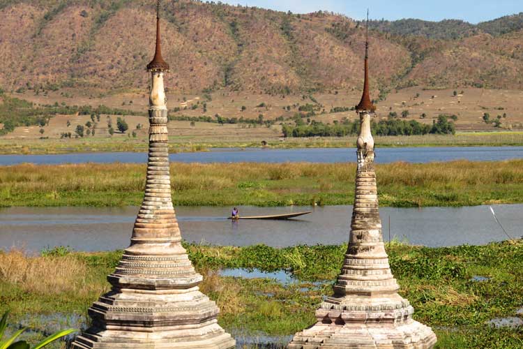 Afterwards, you will be taken to Indein, at the western end of the Lake. The boat takes you through a long channel where you can watch the farms cultivate their produce and then leading to the hidden INDEIN temple complex. Located on the shore of the lake, this site consists of hundreds of small stupas overgrown by moss and greens. The population density in Indein is very little and the villagers earn their living with agriculture and you will see their traditional lifestyle.